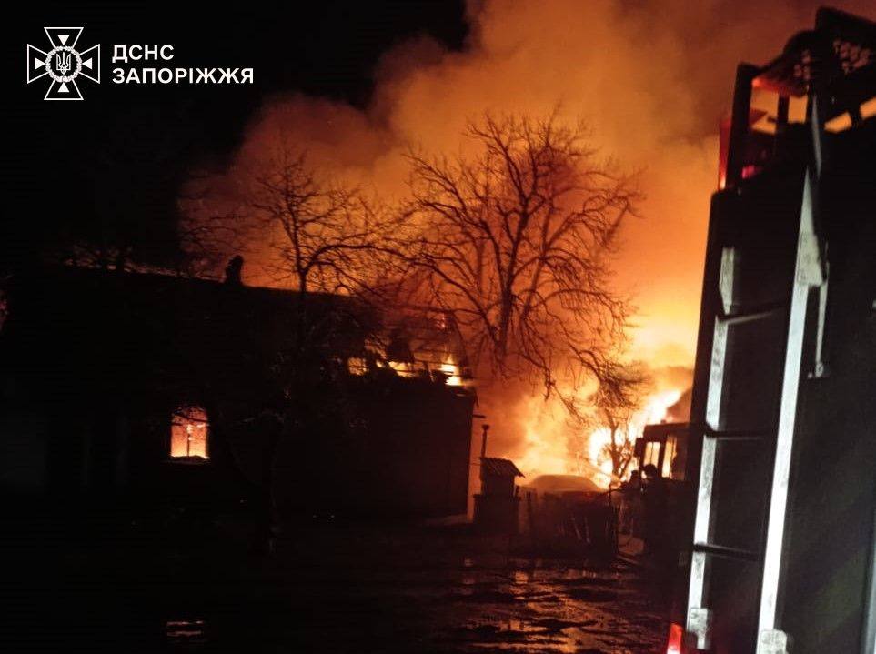 Пожежа на місці російського удару в Запорізькій областіЩе семеро людей постраждали через російські удари по Дніпровщині. Йдеться про шістьох сусідів загиблих з Покровської громади та пенсіонера з Васильківської громади.