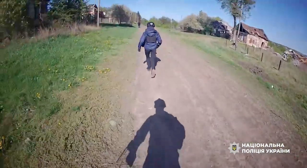 Поліціянти шукають пенсіонера серед зруйнованих будинків. Скриншот відеоВрятували 72-річного Андрія Євгеновича, який лишився сам в одному з населених пунктів Юнаківської громади, назви якого не наводять.