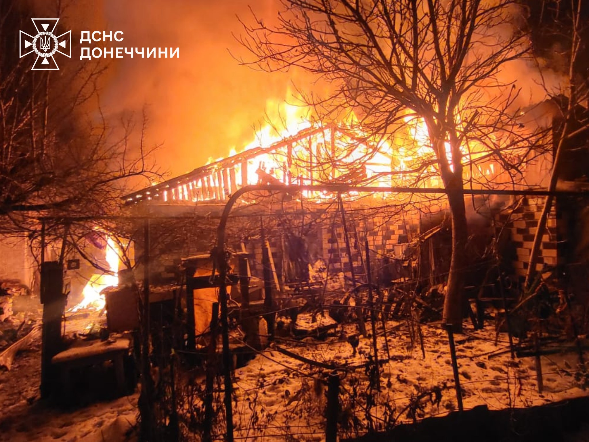 Пожежа, яка зайнялася на приватному подвір’ї в Слов’янську через удар армії РФ керованими авіабомбамиТроє цивільних також постраждали через російські удари напередодні на Харківщині.