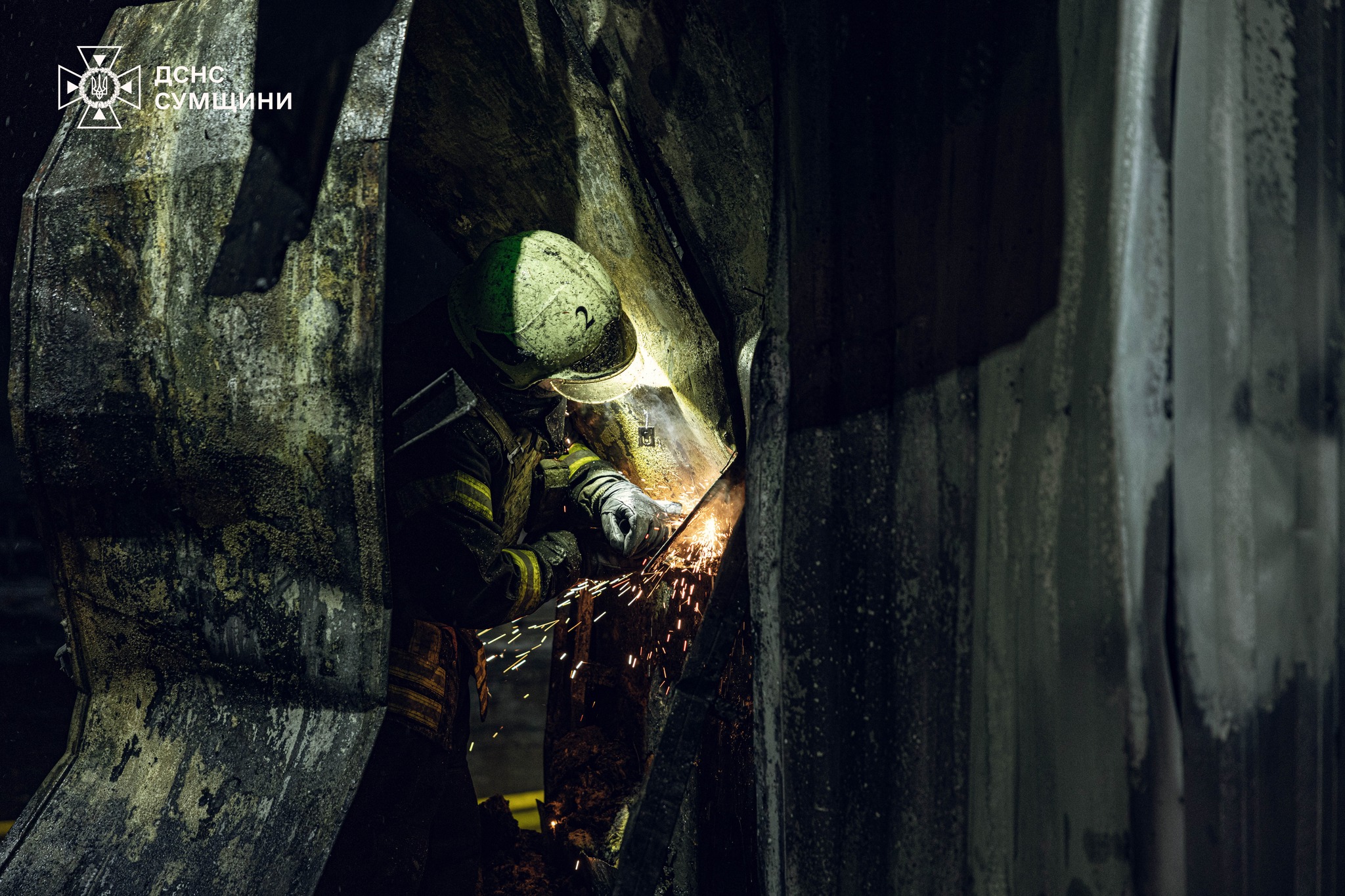 Рятувальник працює на місці російського удару по інфраструктурі на Сумщині 14 січня 2026 рокуТакож в Сумській області під час евакуації з прикордоння росіяни обстріляли авто поліції, тож двоє службовців дістали гостру реакцію на стрес. Такий самий обстріл росіяни здійснили у сусідній Харківщині, внаслідок чого також двоє службовців дістали реакцію на стрес.