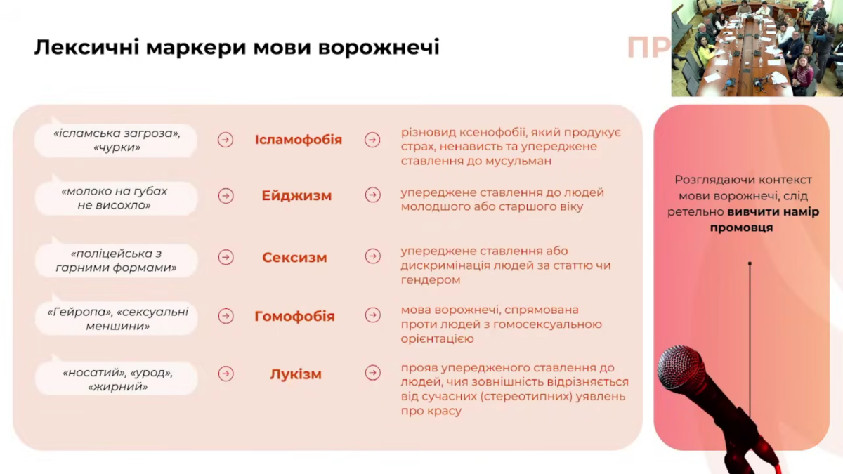 “Часто мова ворожнечі маскується під гумор чи сарказм або просто думку. Але треба пам’ятати, що, якщо результатом цього є стигматизація чи розпалювання ненависті, це вже проблема”.