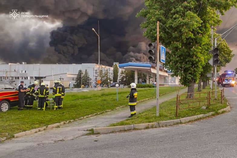 Вибухи вночі також чули у Тернополі, де нині відомо про п’ятьох постраждалих. Містян також просять не відчиняти вікна через забруднення повітря, а дітей – утриматись від прогулянок. Атака на місто була однією з наймасовіших за понад три роки великої війни.