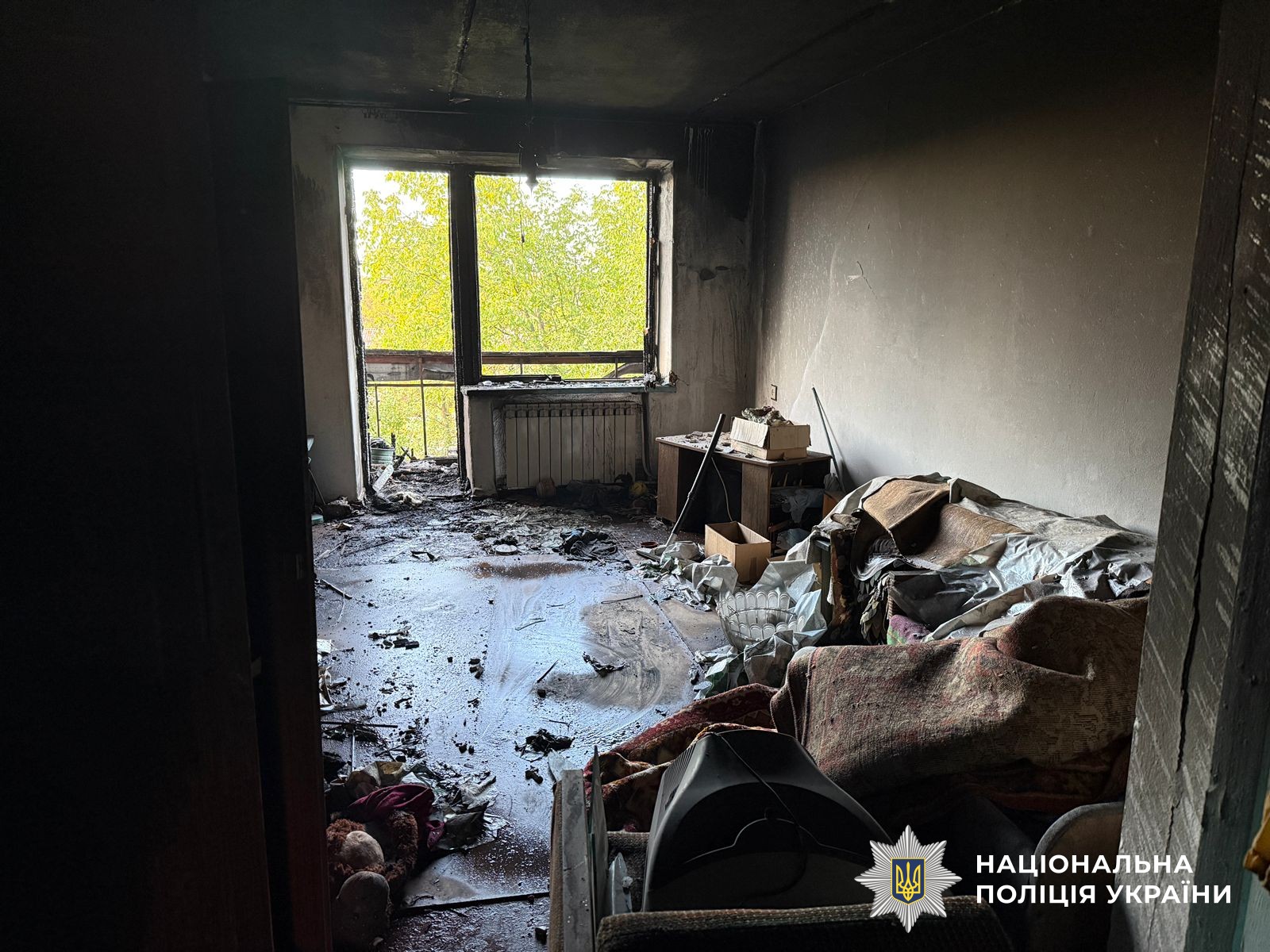 Кімната у квартирі в одній з багатоповерхівок у Запорізькій області після удару російських військових 6 жовтня 2025 року