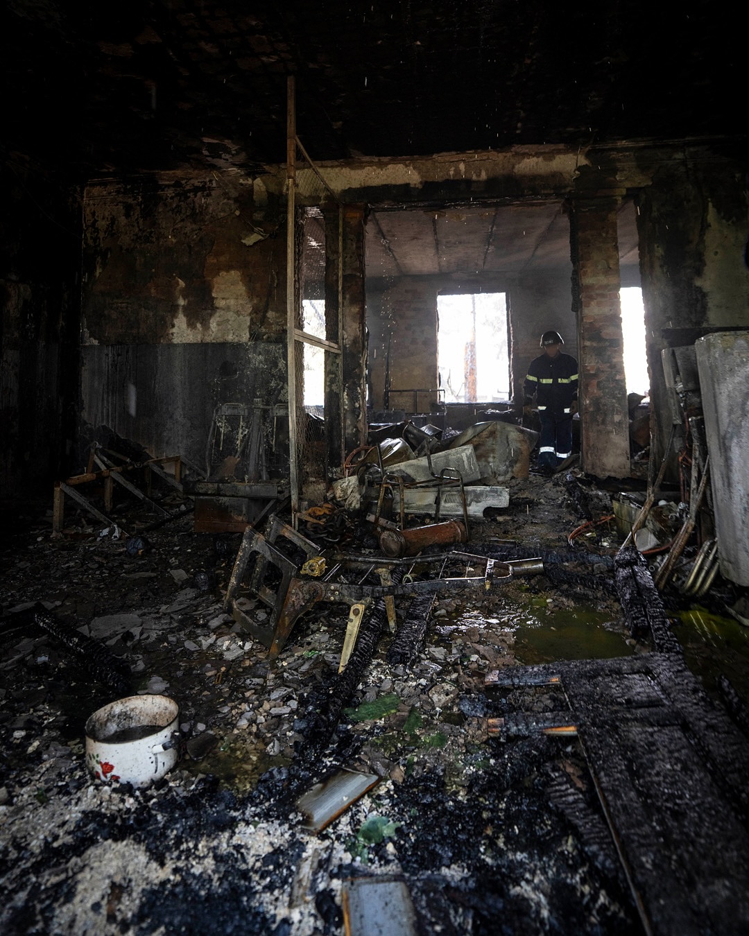 Наслідки російської атаки бази медичного добровольчого батальйону “Госпітальєри”. Джерело: фейсбук-сторінка батальйонуЗазначається, що внаслідок удару армії РФ двома “шахедами” повністю згоріли три поверхи будівлі і все майно. Люди й тварини не постраждали.