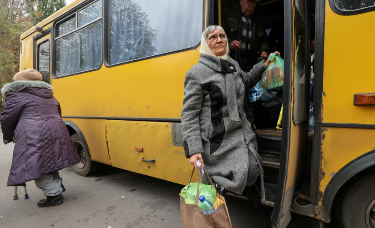 Ілюстраційне зображення. Літні жінки поблизу евакуаційного автобуса на Харківщині. Фото: Reuters