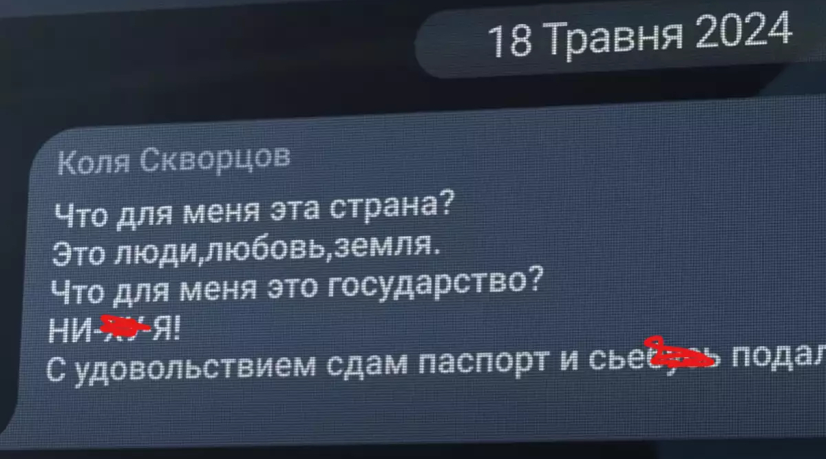 Крім цього, Сцельніков хотів утекти з України та активно цікавився можливими варіантами виїзду за кордон. У квітні 2024 року в чаті телеграм-каналу “Капітан Луганський” він написав: “А мне во Львове озвучили сумму в 13 000 долларов, но без гарантий можно нарваться на киевскую проверку”.