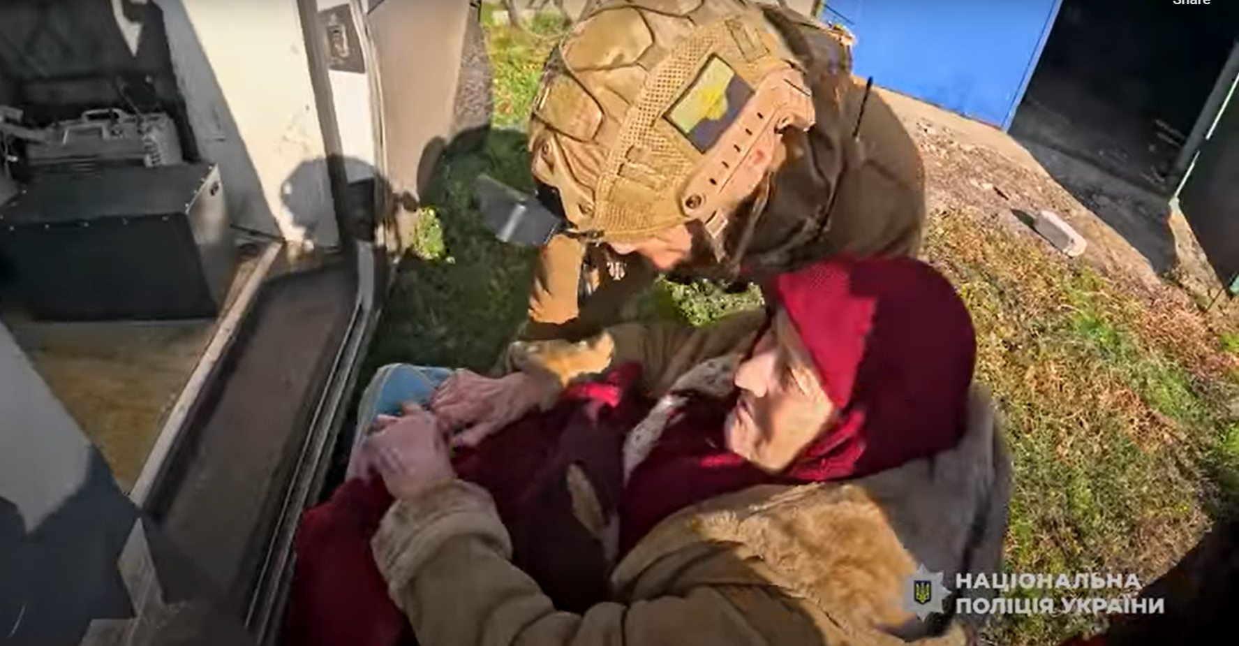 Скриншот з відеоДо поліціянтів звернулася місцева мешканка з проханням врятувати її матір і немобільну бабусю. Їхній будинок був повністю зруйнований, тому родина тимчасово проживала в оселі сусідів, які раніше евакуювалися.