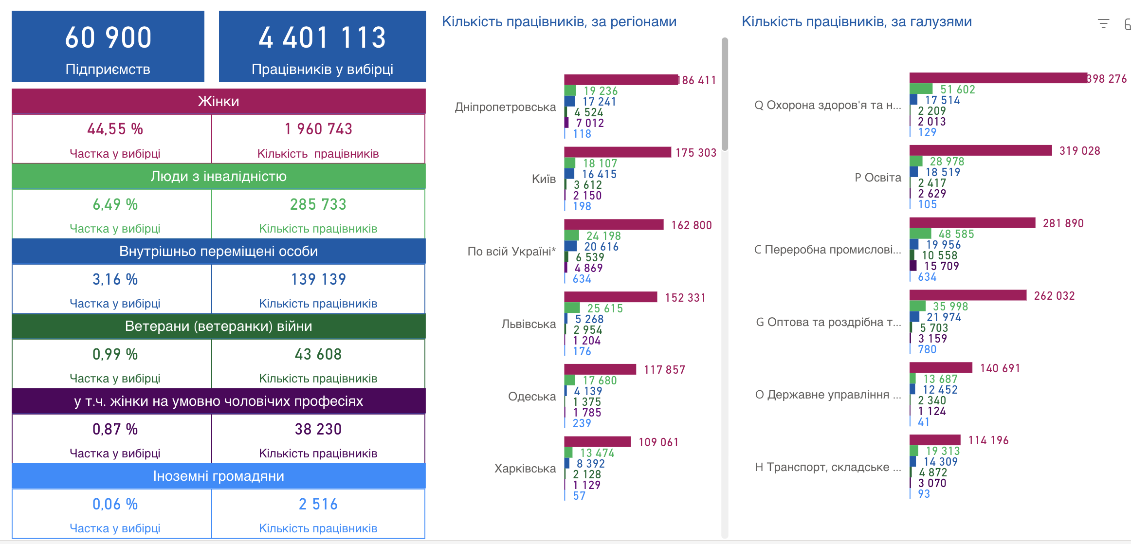 У 2025 році в Україні працювали 139 139 внутрішньо переміщених осіб. Найбільше працевлаштованих ВПО зафіксували в Дніпропетровській області – 17 241 особа, у Києві – 16 415, у Запорізькій області – 12 292, а також у Донецькій області – 9 004.