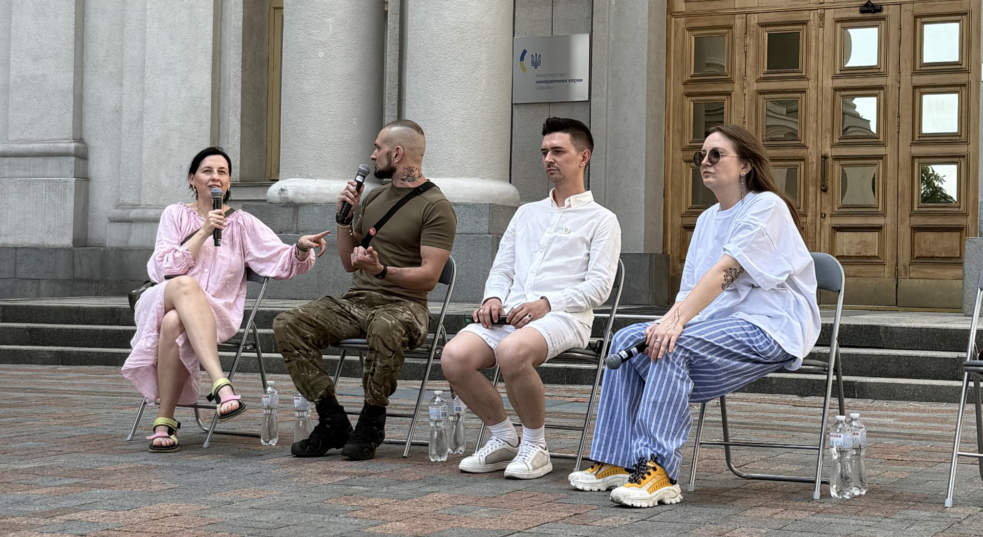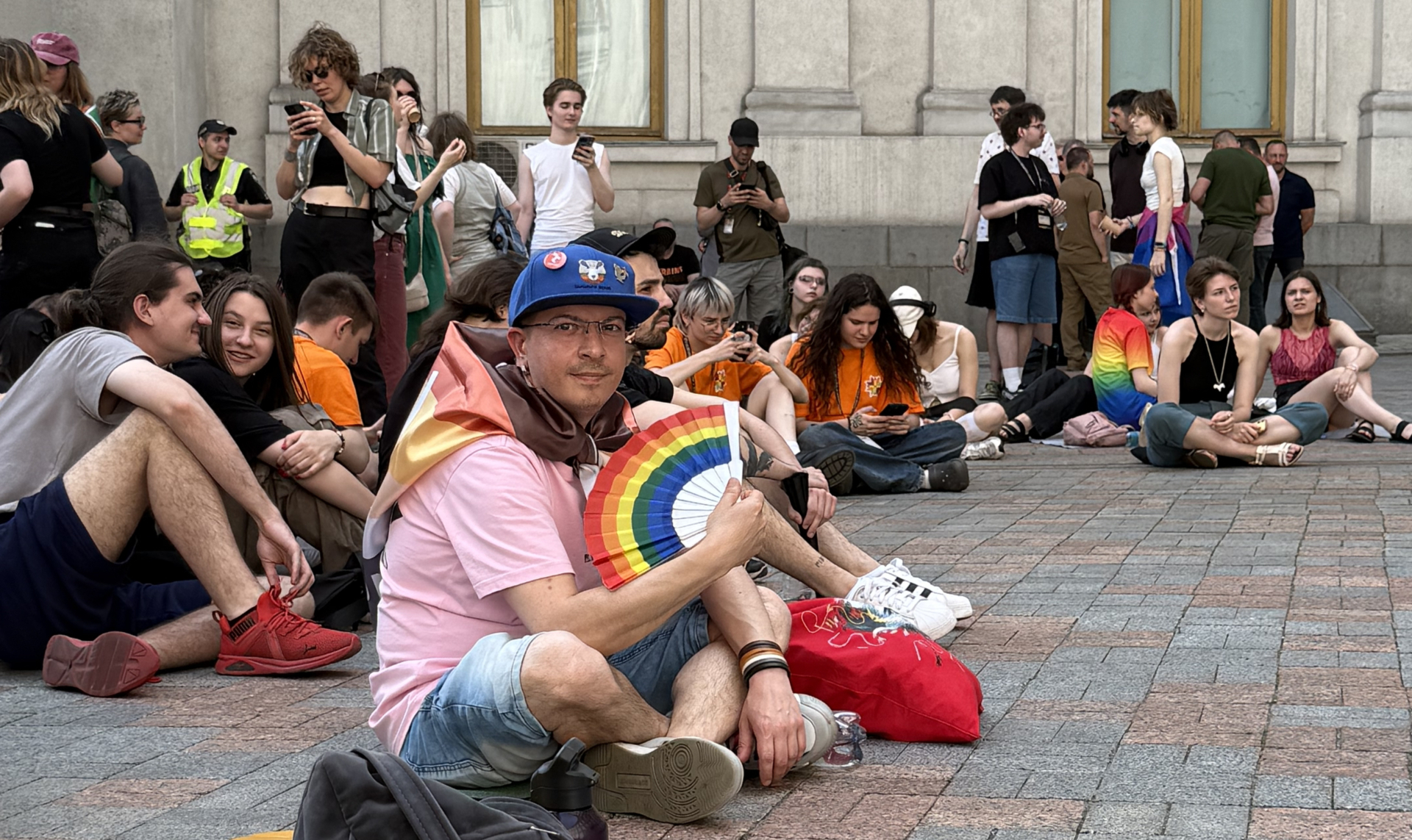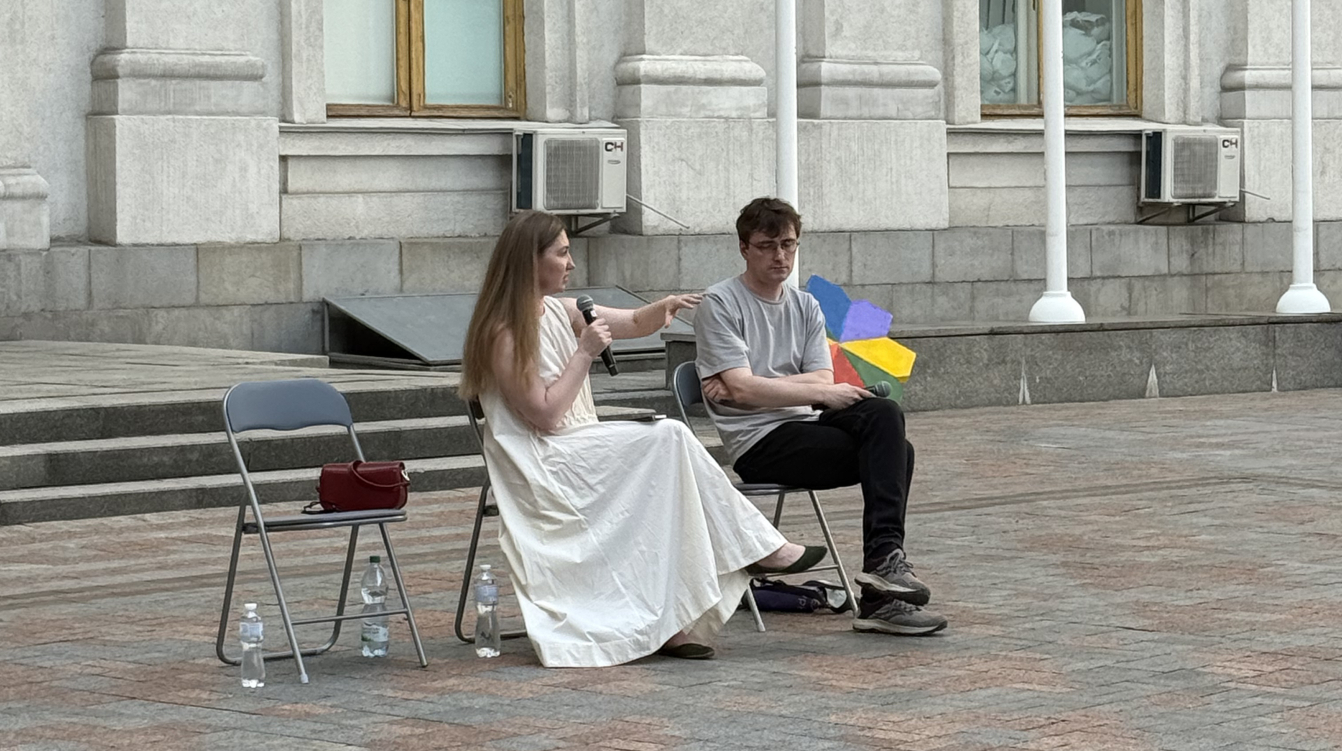 7 червня у Києві відбувся КиївПрайд Парк – серія публічних дискусій, виступів і творчих подій, організованих на відкритому майданчику під будівлею МЗС України. Спочатку захід планували проводити на ВДНГ, однак через загрозу теракту локацію довелося змінити. Попри присутність праворадикалів і гомофобні вигуки по той бік площі, учасники та учасниці заходу провели день у спільноті, діалозі та взаємній підтримці.