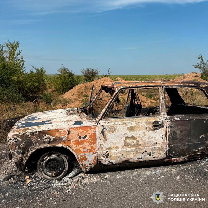П’ятеро цивільних їхали в автівці, коли по ній поцілили російські військові. Для удару використовували безпілотник, яким віддалено керує оператор, тож бачить, куди цілить. Судячи з фото з місця, внаслідок влучання машина вигоріла повністю.