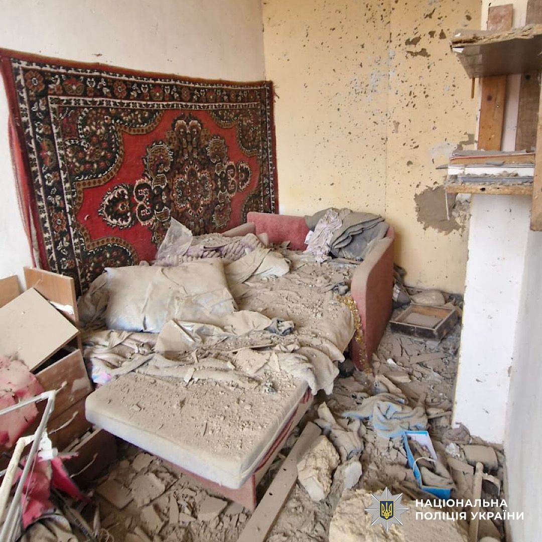 Уламки впали на диван у кімнаті в обстріляному РФ будинку на Запоріжжі