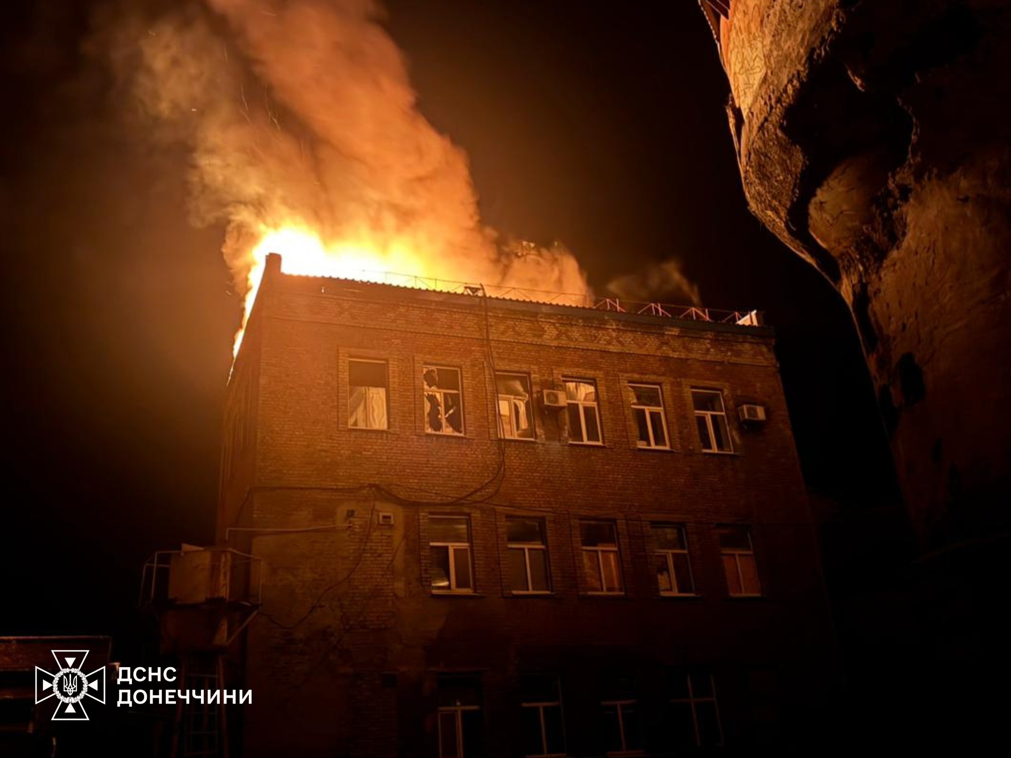 Будівля горить на Донеччині після російського обстрілуДоба напередодні минула без жертв, втім чимало постраждалих було в Харкові та Дніпрі.