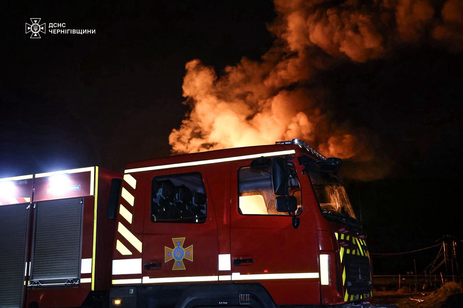 Рятувальна машина на місці російського удару на Чернігівщині в ніч на 14 жовтня 2025 рокуОбмеження для споживачів діють на Чернігівщині. Графіки погодинних відключень можна переглянути за посиланням.