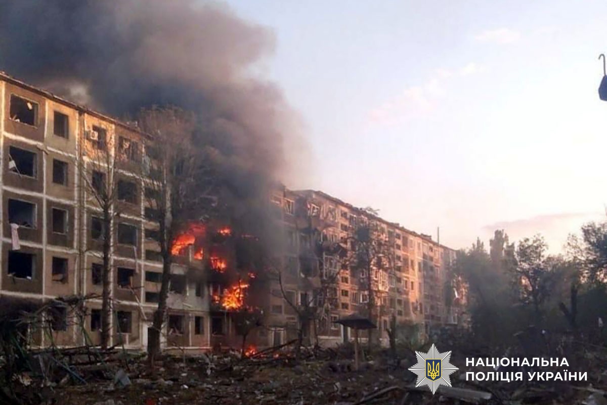 Житлові багатоповерхівки палають після російського удару на Донеччині 12 серпня 2025 рокуДвоє загиблих та одна травмована людина – це мешканці Костянтинівки, яку армія РФ атакувала артилерією, дронами та керованою авіабомбою.
