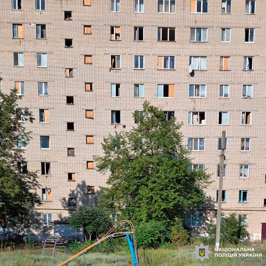 Вибиті через російський удар вікна у житловому будинку на Харківщині, обстріляному армією РФ 14 серпня 2025 рокуНайбільше загиблих минулої доби було на Харківщині.