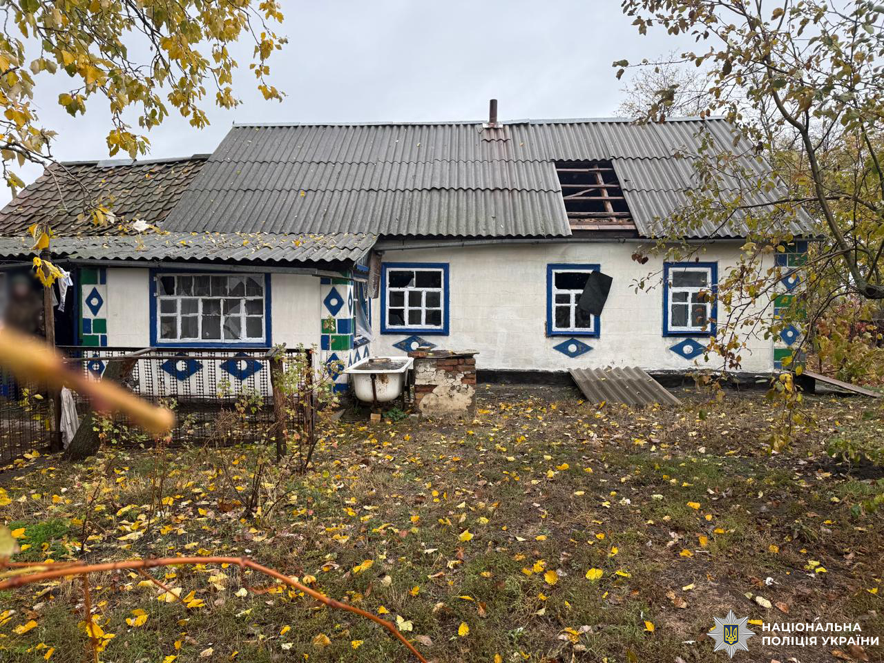 Понівечений ударом РФ будинок у Запорізькій області, де доба 2 листопада 2025 року минула без жертв та травмованих, але з матеріальними наслідкамиНа Херсонщині удар росіян дроном по Микільському вбив 82-річну місцеву жінку.