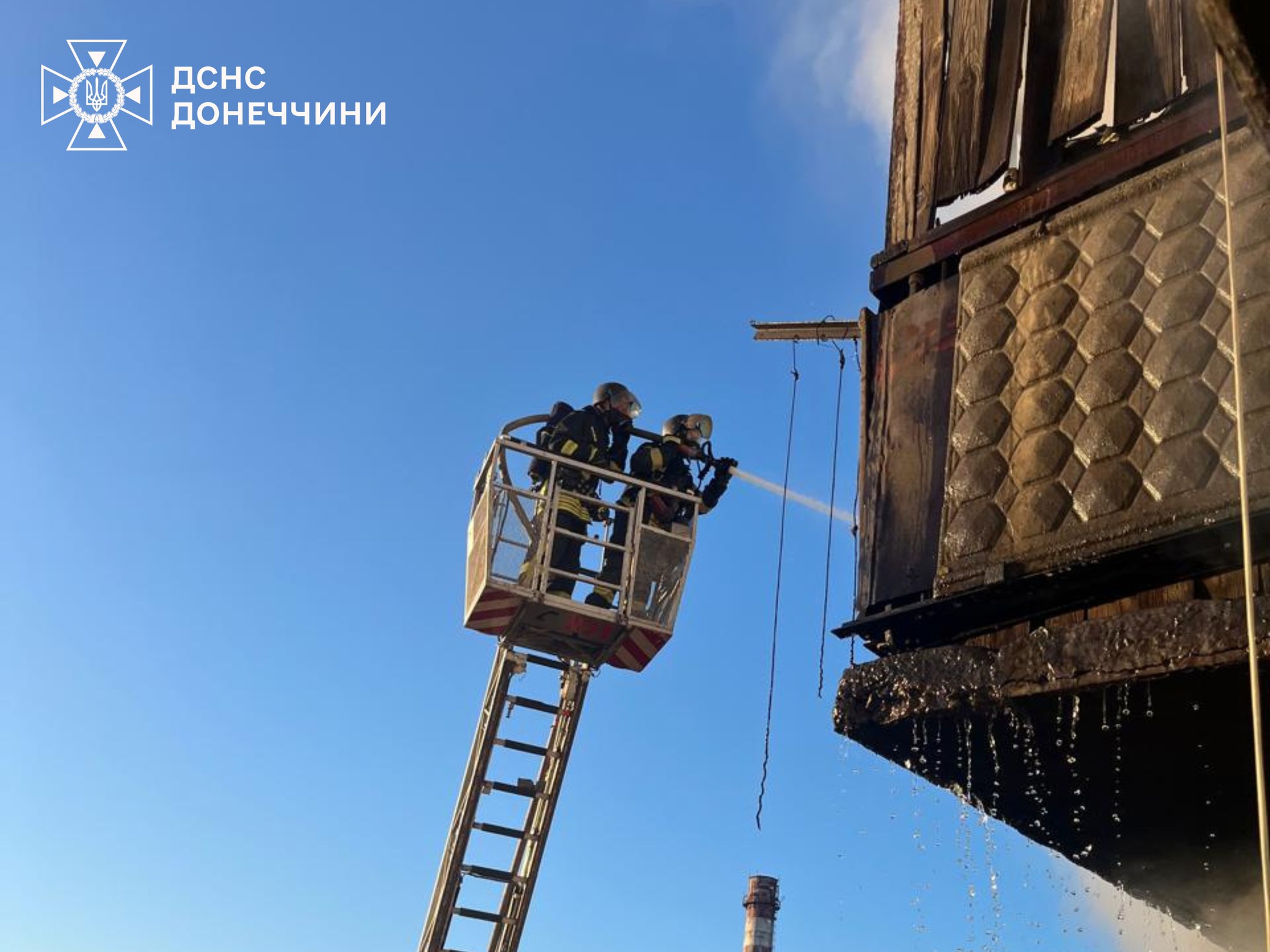 Пожежники гасять займання, яке спалахнуло в багатоповерхівці на Донеччині, по якій поцілили російські військові 25 листопада 2025 рокуНа Херсонщині російські удари минулої доби травмували двох дорослих та 11-річного хлопчика.