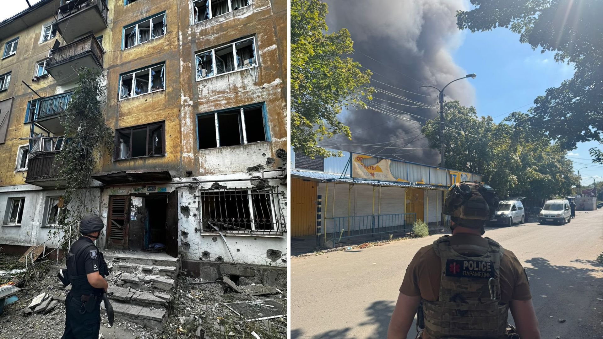 Снаряди влучили по ринку: пошкоджено 15 торговельних павільйонів, вісім приватних будинків, шість багатоповерхівок, крамницю, два автомобілі та лінію електропередач.
