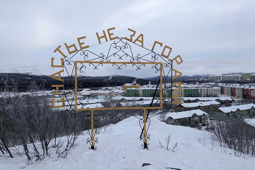 Ілюстраційне зображення. Металевий напис “Щастя не за горами” на тлі російського міста Харп, де розташована одна з найсуворіших у країні колоній. Фото: АРУкраїнська правозахисниця Олександра Дворецька, коментуючи новини, розповіла, що в РФ участь у конвенції частина громадськості сприймала як “податок на катування”.