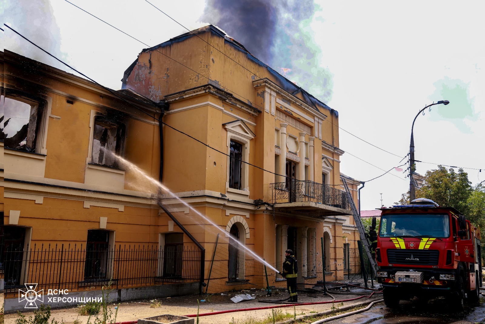 У Херсоні бригада рятувальників потрапила під удар російських військових, коли гасили займання на місці попереднього російського удару.