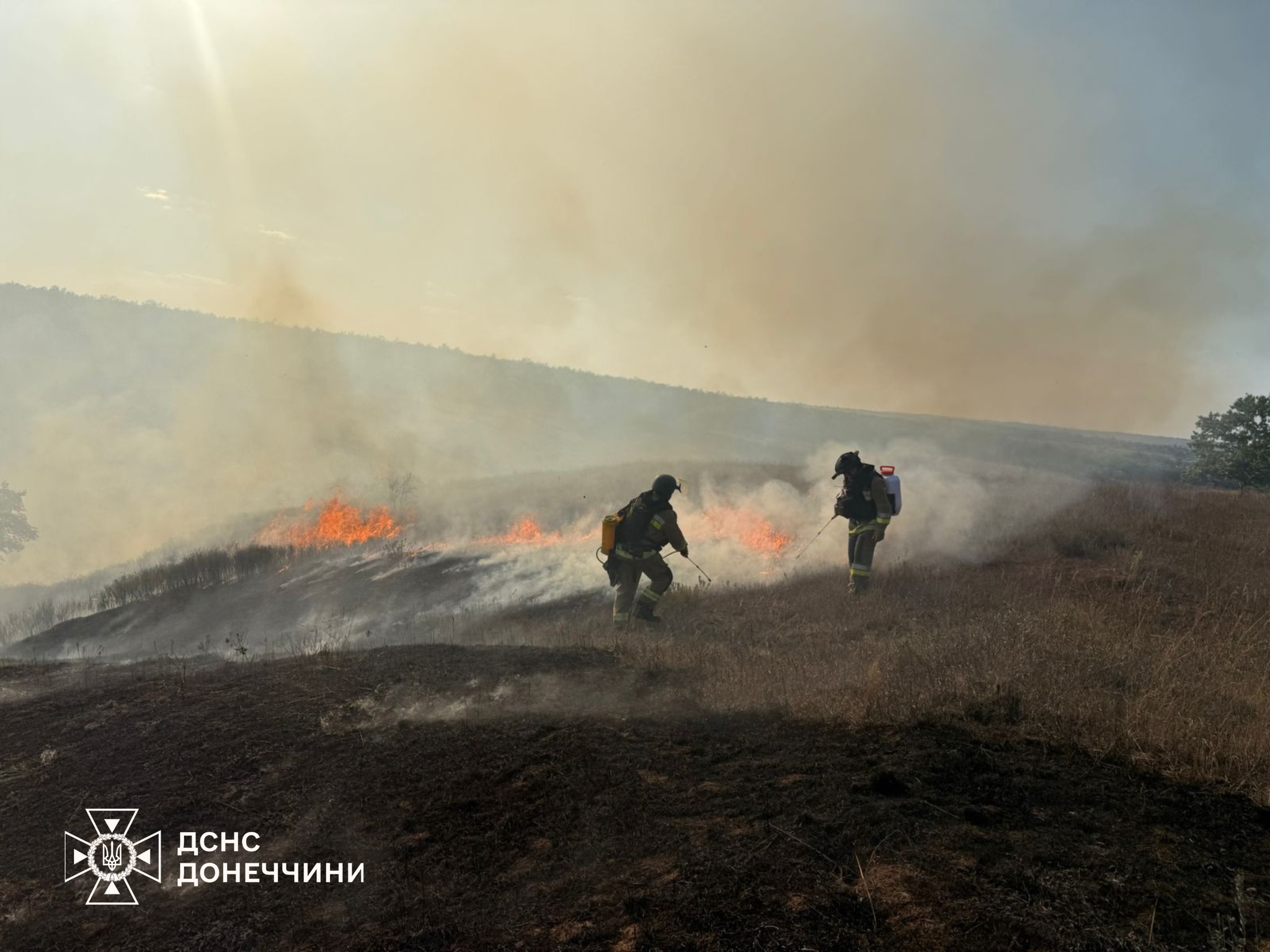 Пожежники гасять займання в полі, що спалахнуло після одного з російських обстрілівПо двоє людей загинули в Херсонській та Запорізькій областях.