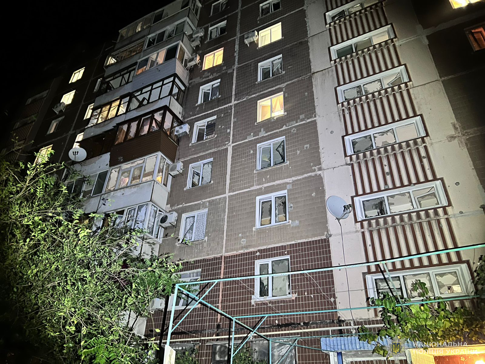 Обстріляна російськими військовими багатоповерхівка в Запорізькій області