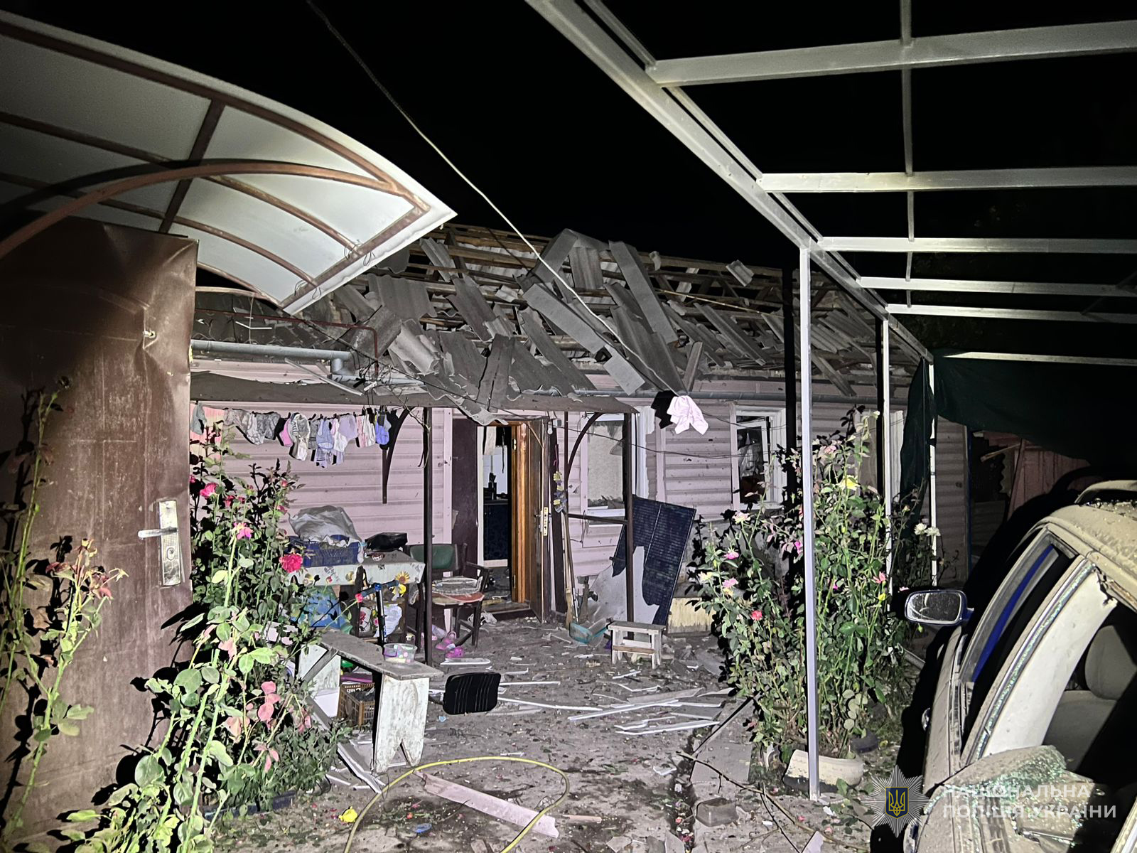 Подвір’я приватного будинку в Запорізькій області, яке лишилося понівеченим після російського ударуМинулої доби про загиблих звітували з чотирьох із п’яти регіонів, що були під російськими ударами.