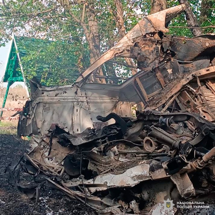 Поліціянти не кажуть, скільки років було загиблому водію, лише додають, що він помер від отриманих травм на місці. Судячи з фото, яке виклали правоохоронці, чоловік, ймовірно, наїхав на вибухівку неподалік альтанки для відпочинку.