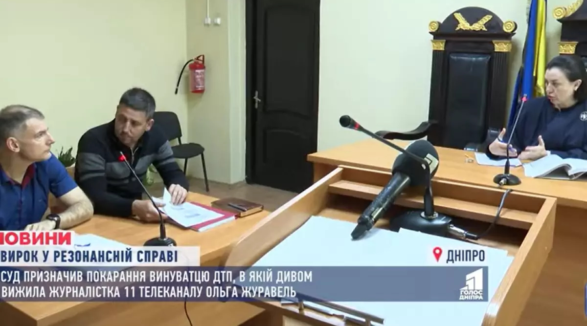 Амур-Нижньодніпровський районний суд Дніпра призначив чотири роки умовно з іспитовим терміном на два роки водію автомобіля “Nissan”, визнавши його винним у справі про ДТП, у якій була важко травмована журналістка й ведуча 11 каналу Дніпра Ольга Журавель.