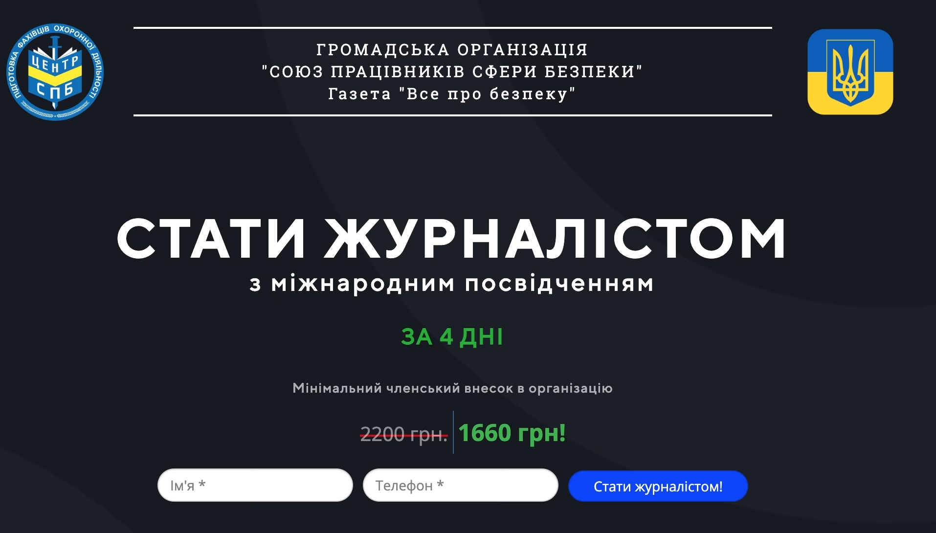 Коштує це 1660 гривень. У пакеті – “посвідчення міжнародного зразка”, яке нібито дає право на доступ до закритих заходів, зйомку будь-де, підставу для отримання травматичної зброї та можливість працювати з архівами.