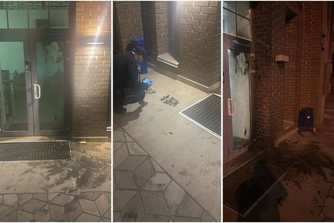 Фото: ОЄОУІнцидент стався 20 квітня 2025 року, близько 21:27. Підліток прийшов до синагоги “Бейс Штерн Шульман” на вулиці Гірничих Інженерів і кинув у вхідні двері дві заздалегідь підготовлені скляні пляшки із запальною сумішшю. Він підпалив тканину в горловині пляшок запальничкою, після чого жбурнув їх у двері будівлі. Вогонь пошкодив двері, а сам підліток утік з місця події.