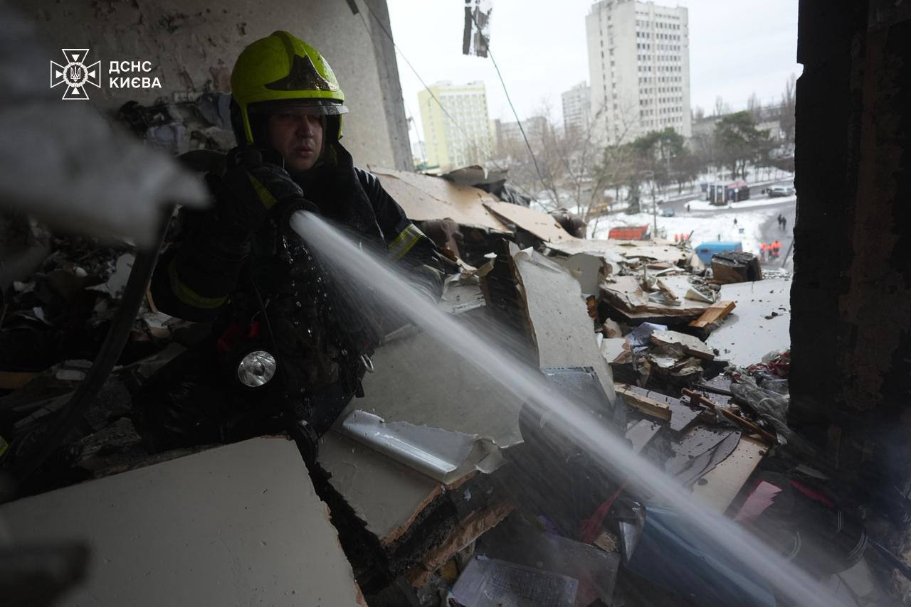 Наслідки російської атаки на КиївТакож відомо про одного загиблого у пошкодженому будинку Дніпровського району. Його дружина в лікарні у тяжкому стані, розповів Віталій Кличко.