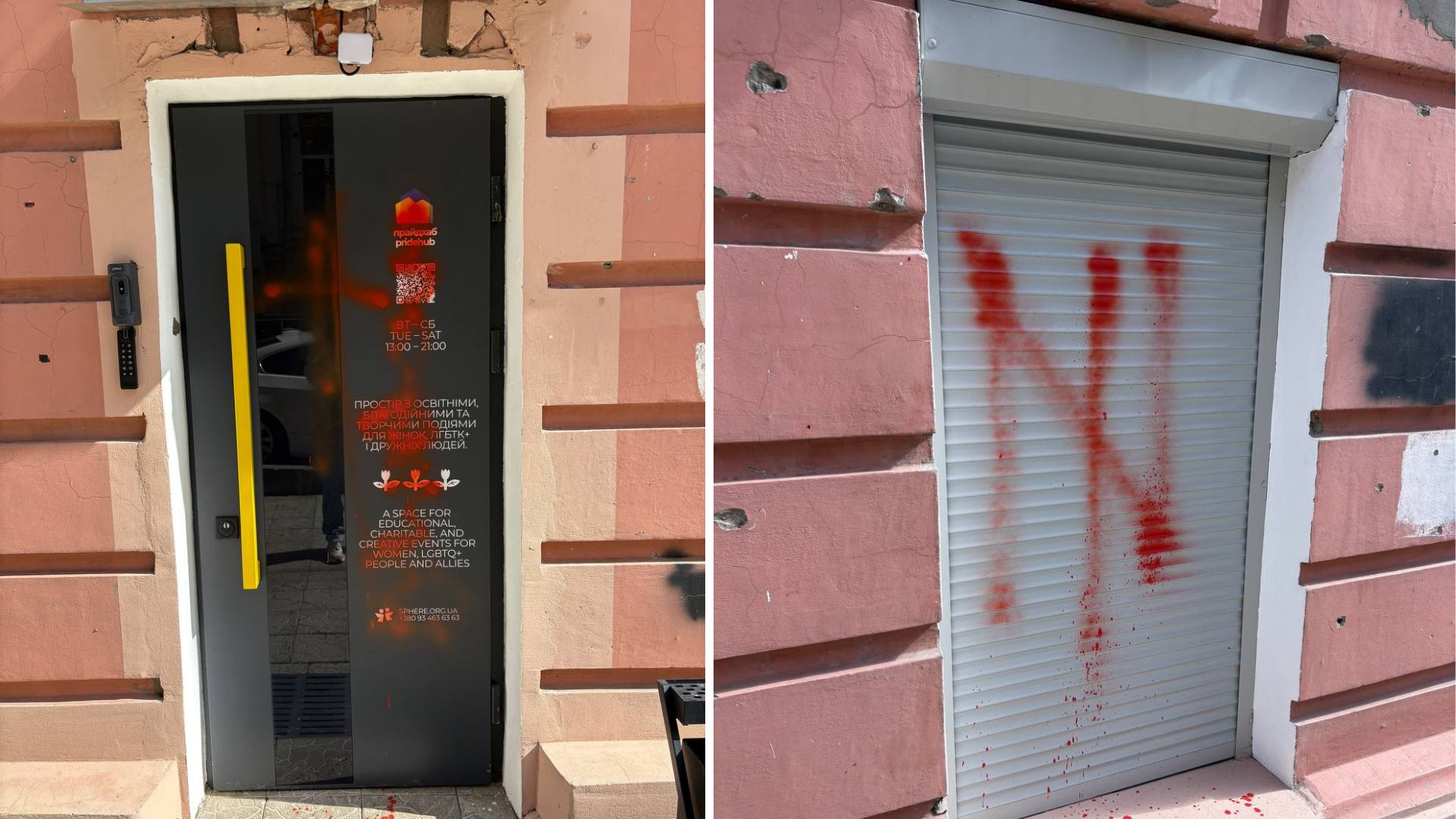 У Києві пошкодили приміщення ресурсного центру “ПрайдХаб”. Цього разу вандали обмалювали фасад, а також пошкодили вікна й двері. Це не перший випадок нападу на простір.