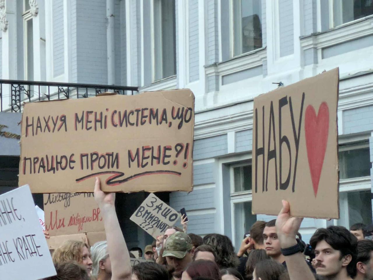 У Києві та інших містах України тривають акції протесту проти законопроєкту щодо позбавлення незалежності НАБУ та САП.