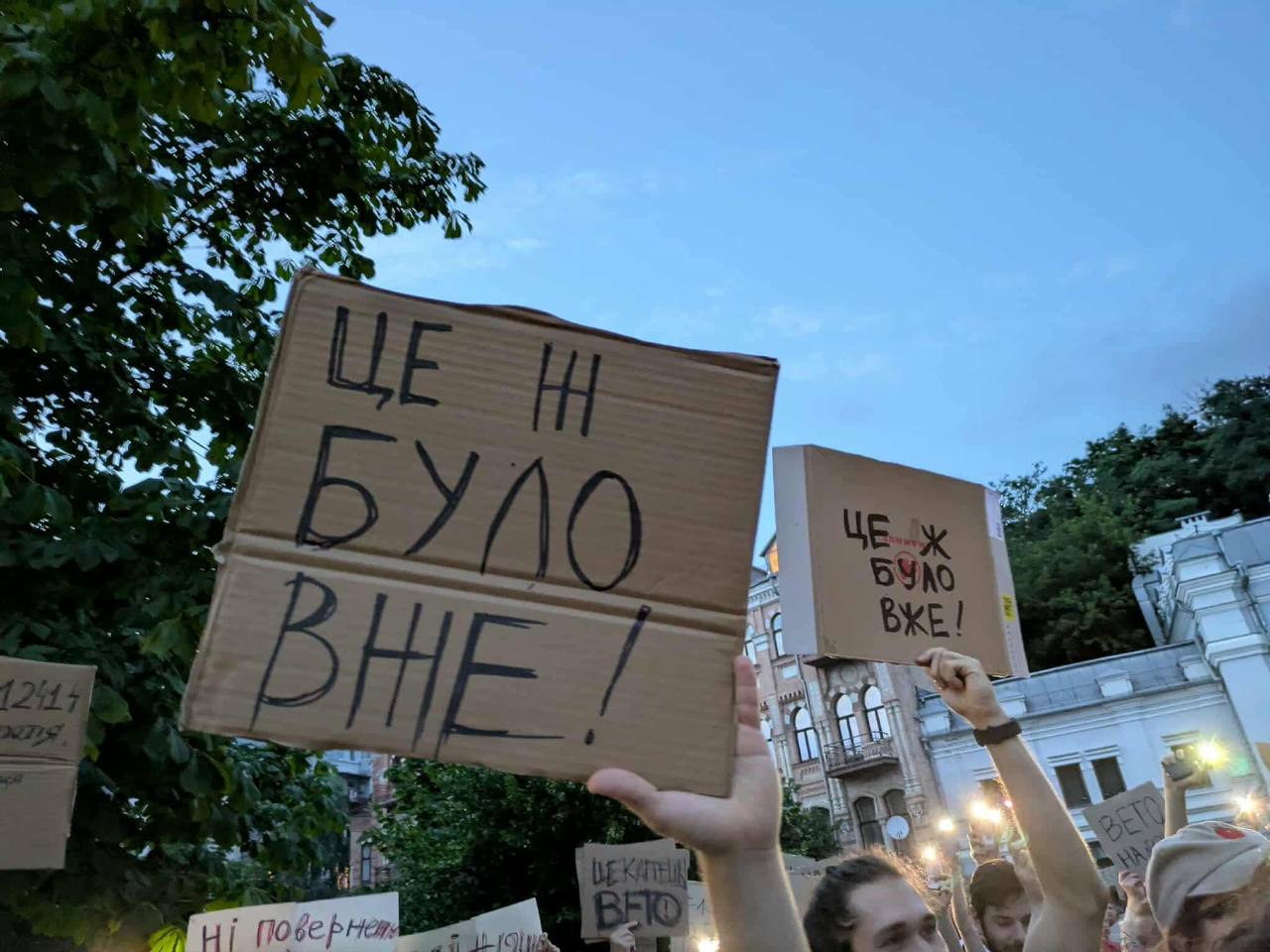 У Києві та інших містах України тривають акції протесту проти законопроєкту щодо позбавлення незалежності НАБУ та САП