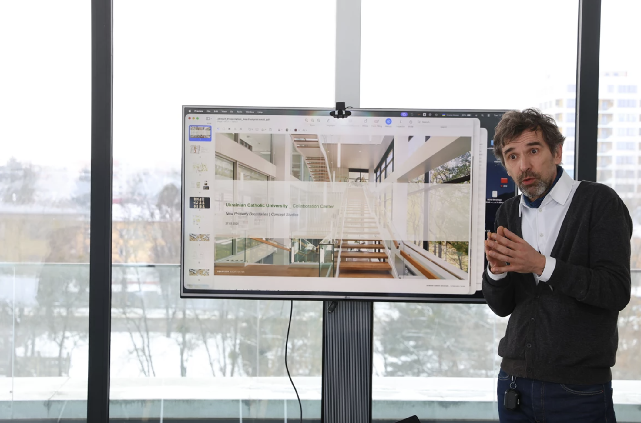 Центр планують звести на вулиці Козельницькій, поблизу університетського містечка УКУ. Робоча назва ініціативи — “Центр співпраці УКУ”.