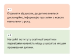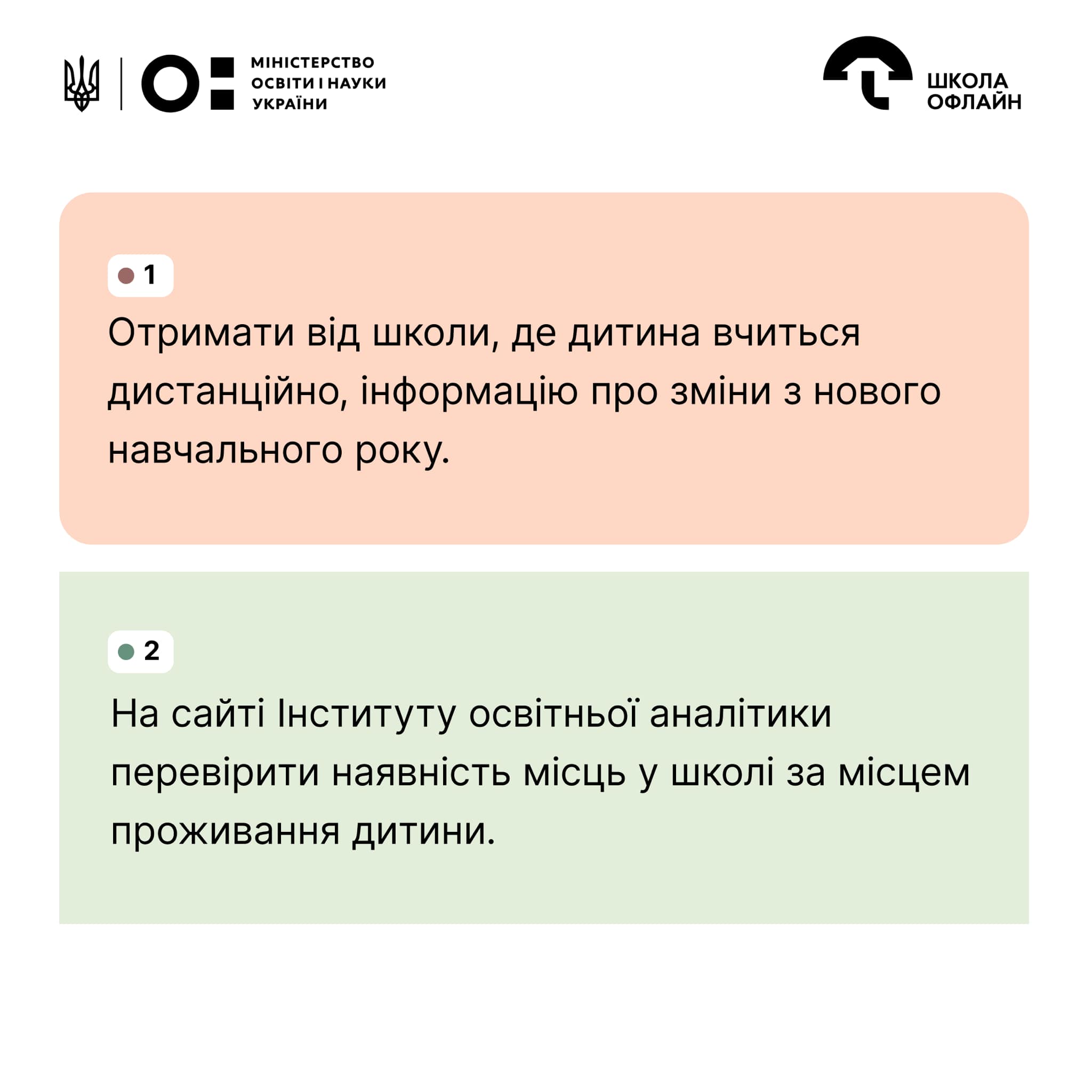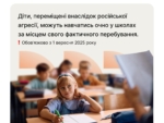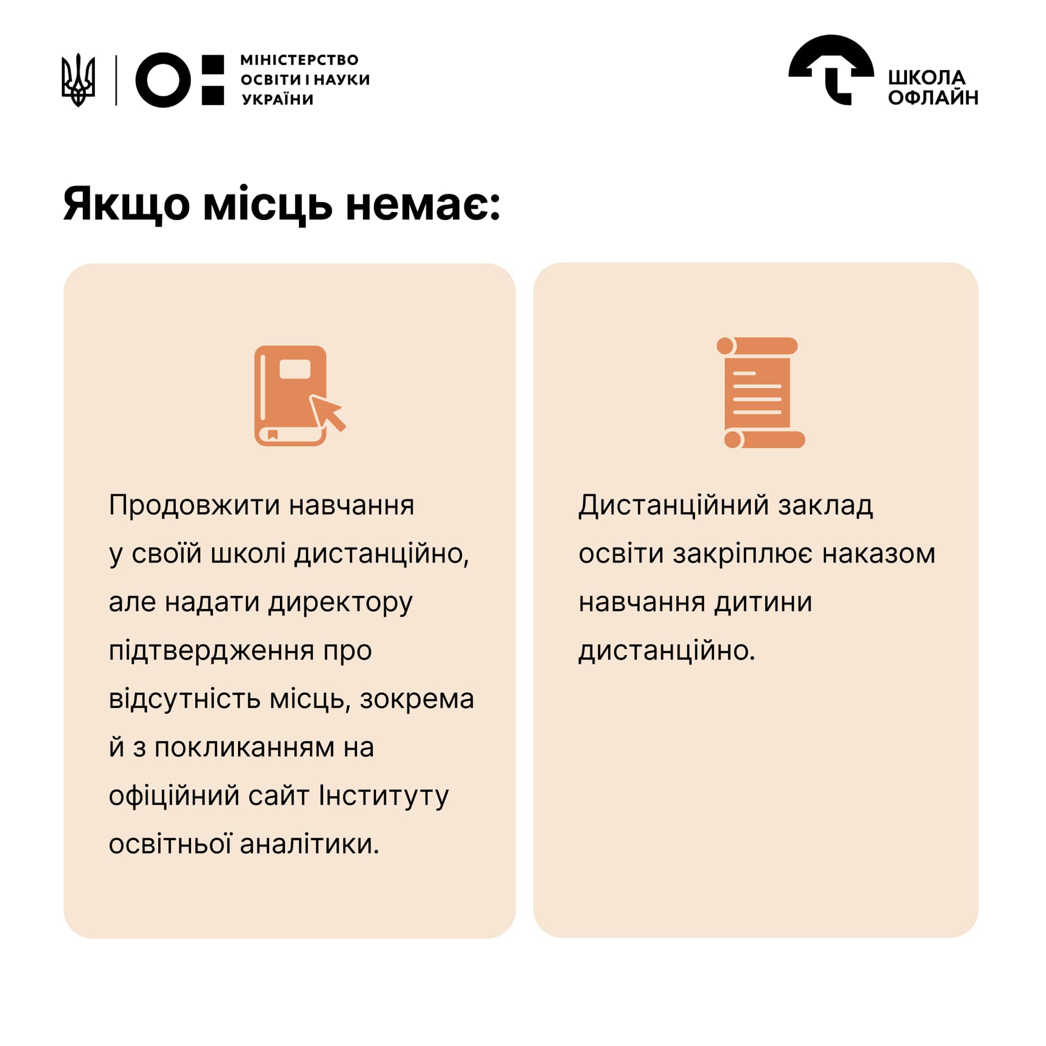 Окрім цього, якщо дитина перебуває на території, де тривають або можливі бойові дії, — вона може продовжувати навчання дистанційно у своїй школі, звідки виїхала. Їй не потрібно переводитися до іншого закладу для дистанційного навчання.
