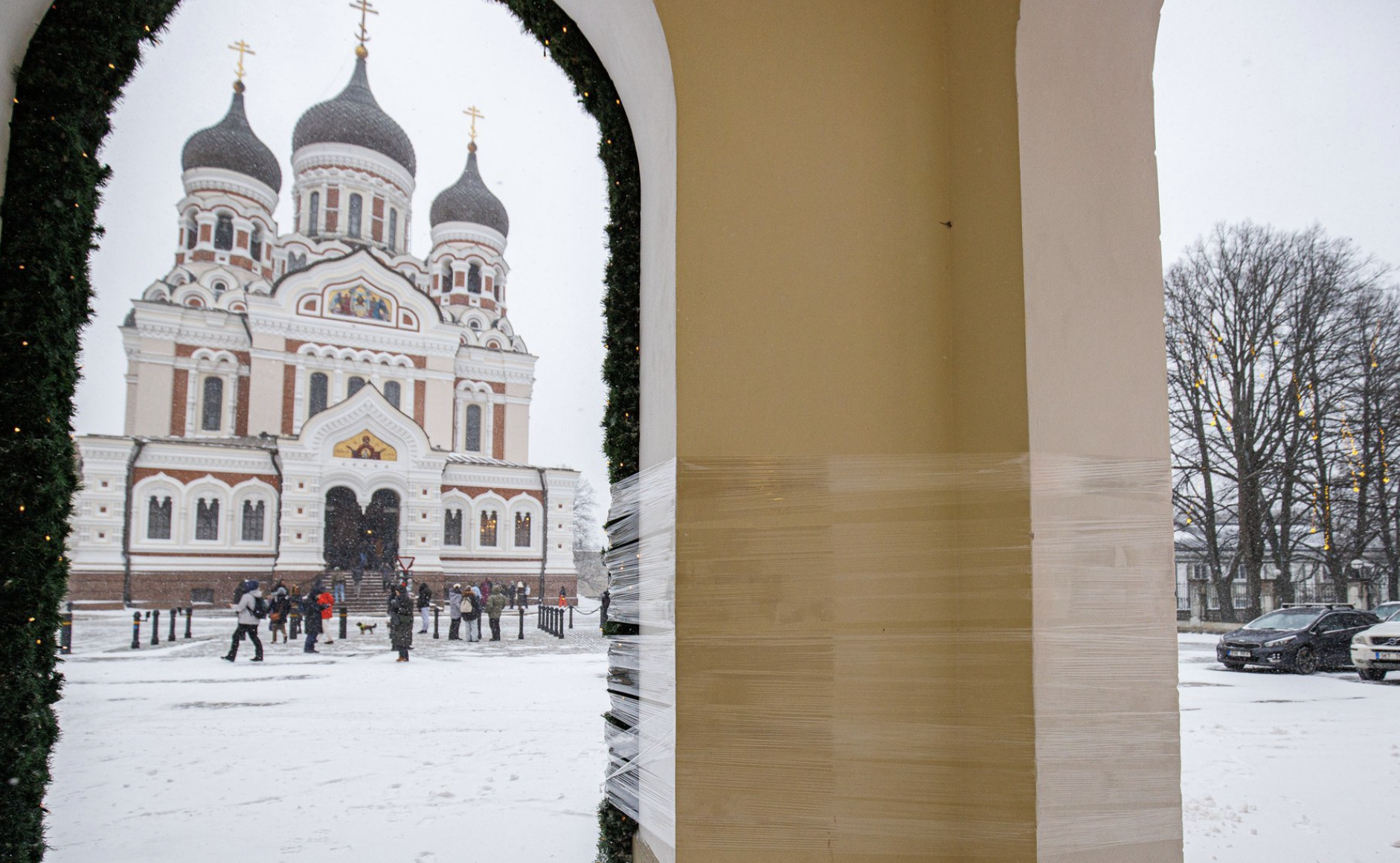 Фото: Taavi Sepp / Delfi MeediaІнцидент стався вночі 30 грудня. Близько 1:45 правоохоронці отримали повідомлення, що невідомий намалював знак Z на колоні парламентської будівлі. Поліція прибула на місце та затримала підозрюваного – 32-річного громадянина Естонії.