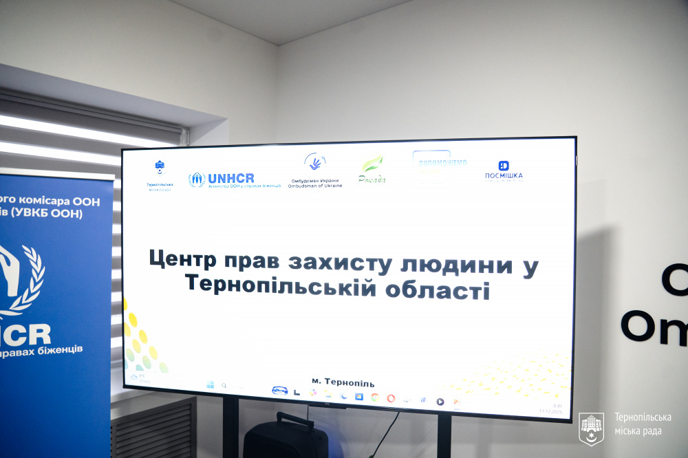 19 грудня у Тернополі запрацював новий регіональний Центр захисту прав людини, який стане важливим осередком правозахисної допомоги для родин військовослужбовців, внутрішньо переміщених осіб та постраждалих від війни, надаючи консультації, правову допомогу, а також дитячі простори та хаби для громадських ініціатив.