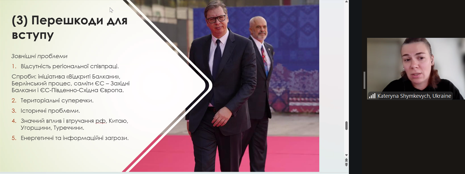 скриншот лекціїЗахідні Балкани – досить близький до України регіон, не тільки географічно, але й політично та економічно, зазначила історикиня. До цієї групи країн входять Албанія, Чорногорія, Сербія, Північна Македонія, Косово, Боснія і Герцеговина, а до 2013 року – також Хорватія.