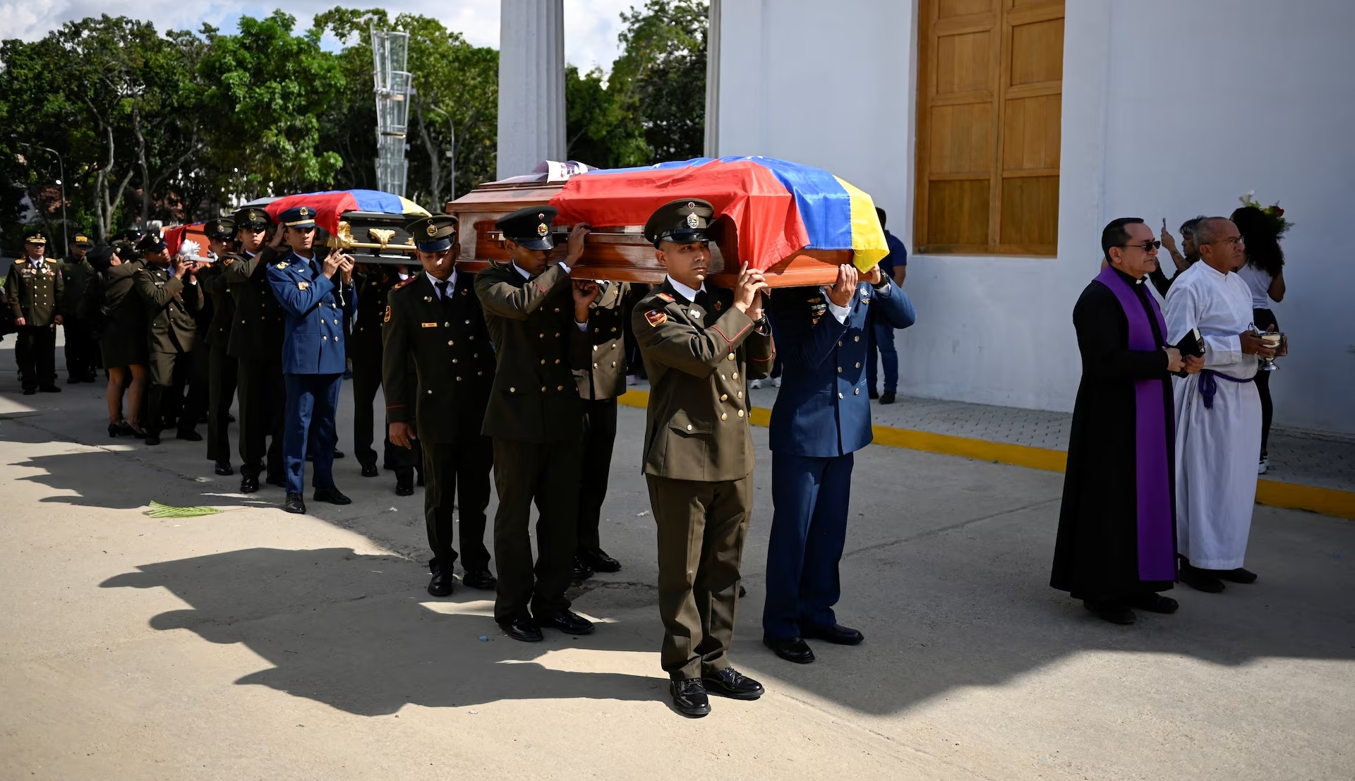 7 січня в Каракасі відбулися похорони венесуельських військових, загиблих під час операції США. На церемонії військові несли труни з тілами загиблих.
