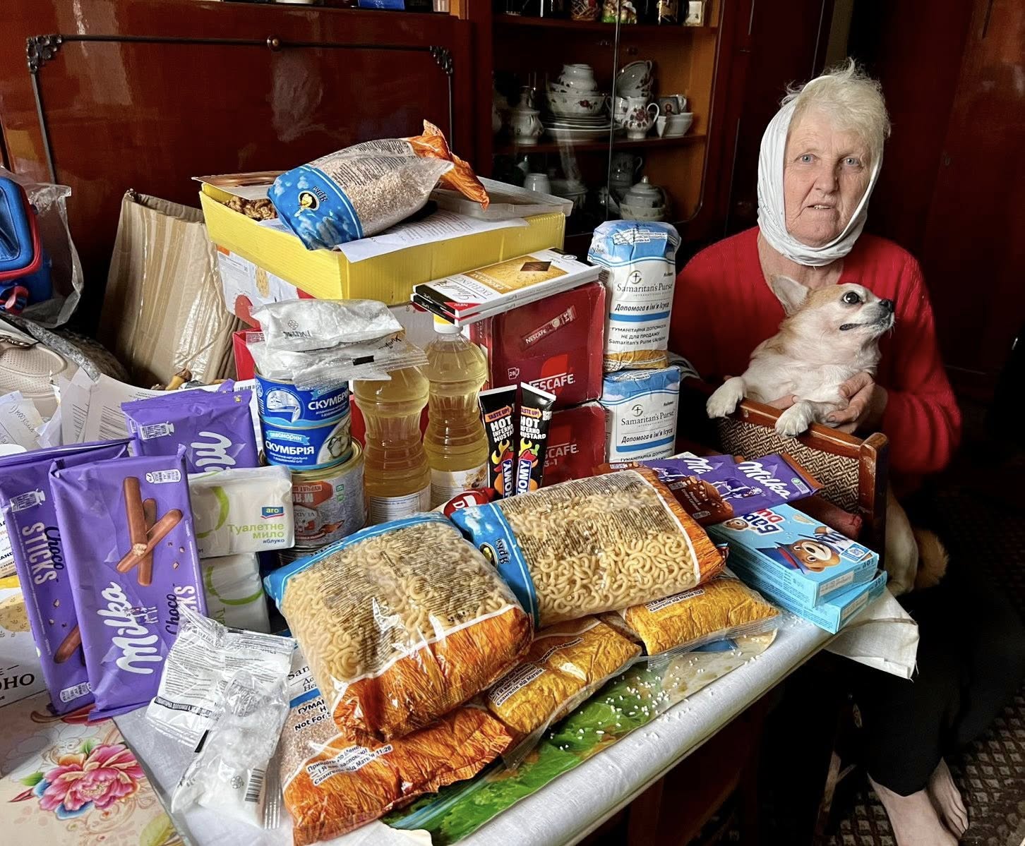 Ілюстраційне зображення літньої українки, яка отримала від благодійників харчі. Фото: Food Bank UkraineМеханізм передання харчів має назву продовольчий банк.