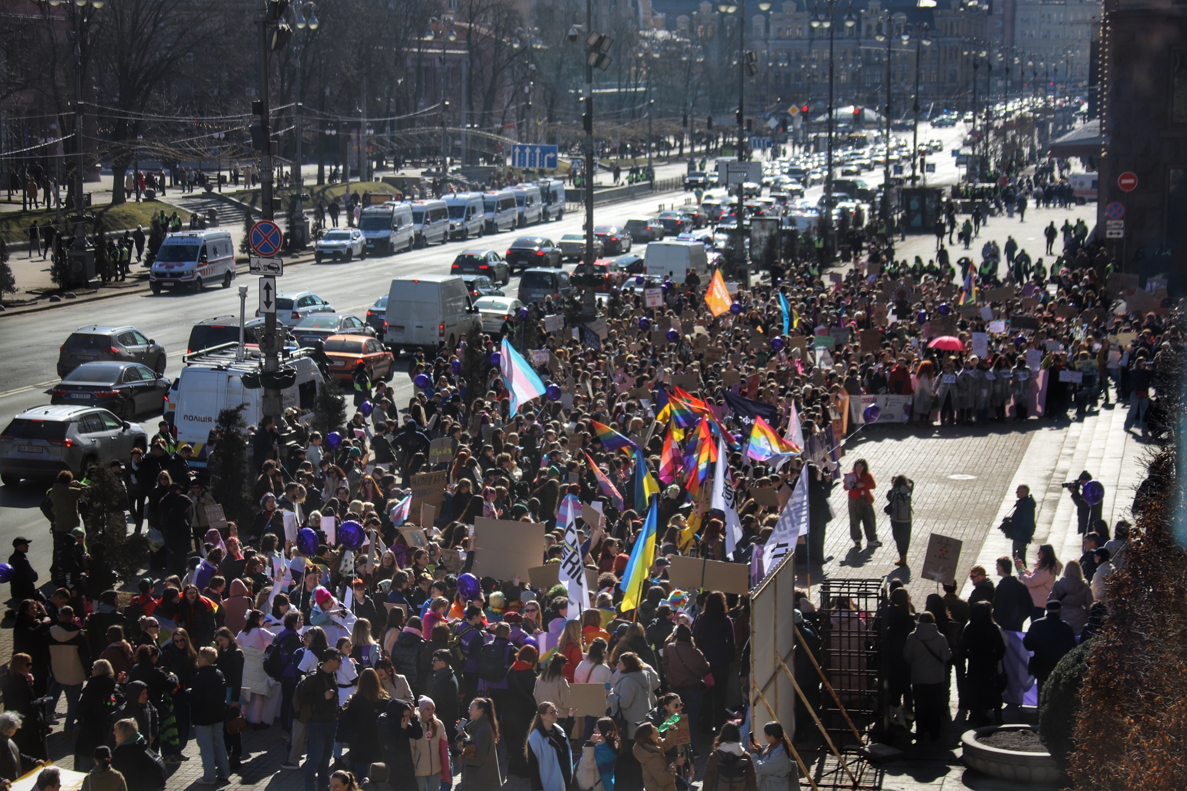 В Києві 8 березня відбувся Марш жінок — цьогорічна акція стала першою масовою ходою такого формату в Україні від початку повномасштабного вторгнення РФ.