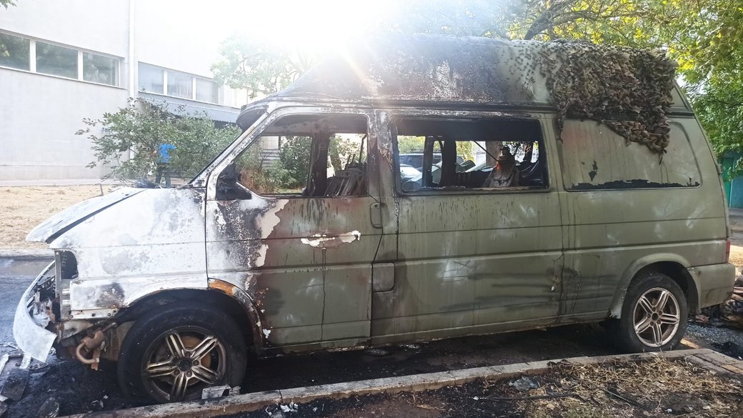 Спалений евакуаційний автомобіль військової медикині Наталії Тарасової в Одесі. Фото з фейсбуку Наталії ТарасовоїЗа словами волонтерки, пожежа знищила не лише транспортний засіб.