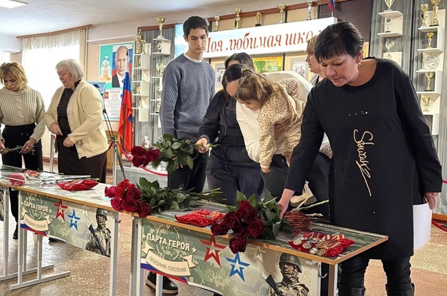 Так, раніше чотири “парти героя” відкрили в горлівському ліцеї №85. А в донецькій школі №88 такі парти присвятили загиблим пропагандистам Олександру Мартем’янову та Анатолію Жарову.