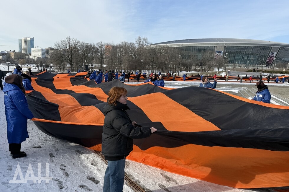 Стрічку довжиною 200 метрів розтягнули “на знак поваги до пам’яті героїв, які здійснювали подвиги заради своєї країни й народу в різні часи – як у роки великої вітчизняної війни, так і в роки спецоперації”, заявив керівник МГЕР на окупованій Донеччині Сергій Добровольський.