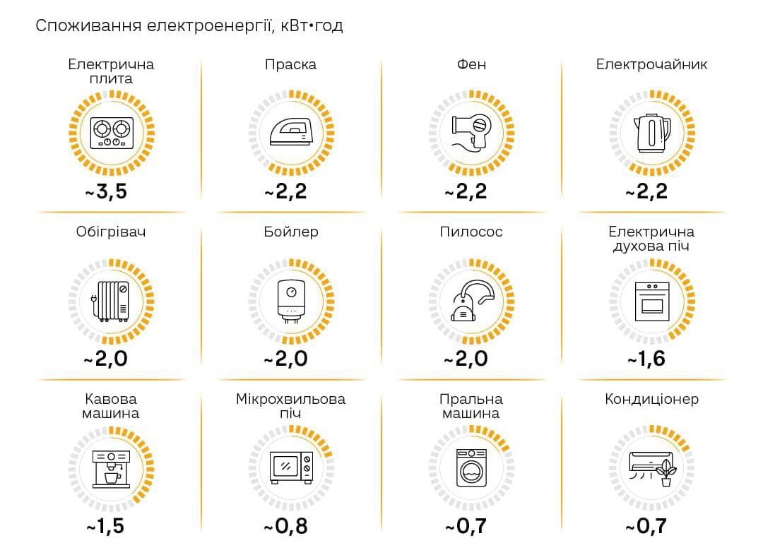 Інфографіка з кількістю енергії, що споживають популярні прилади. Інфографіка агенції візуальних комунікацій Top Lead на основі даних Державної інспекції енергетичного наглядуНагадаємо, що українські слідчі розглядають російські атаки на енергетику як складник геноциду, а в ООН не відкидають, що такі обстріли енергетики можуть бути злочином проти людяності.