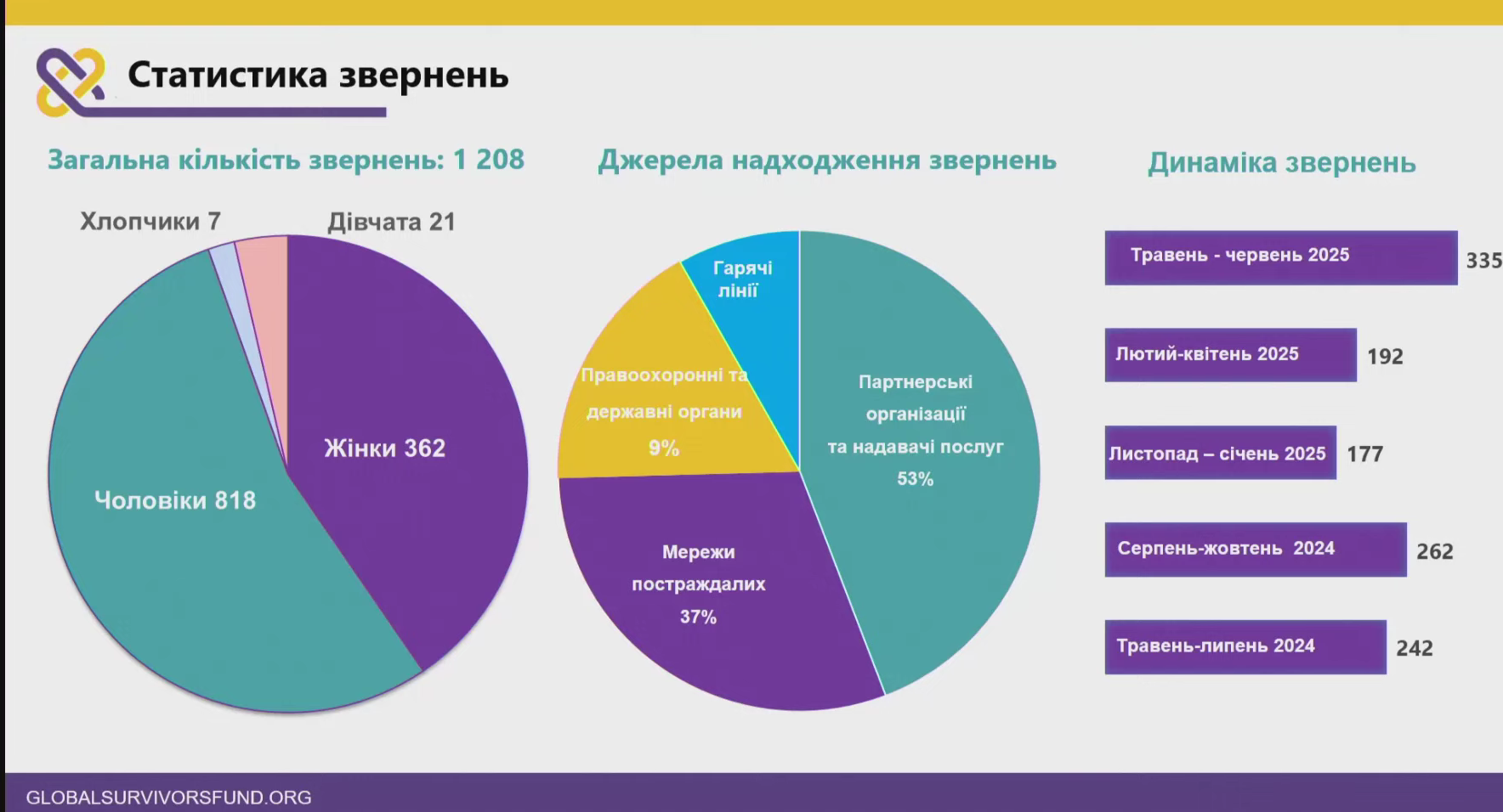 Майже 40% звернень надійшли через мережі постраждалих, 50% – через партнерські організації та надавачів послуг.