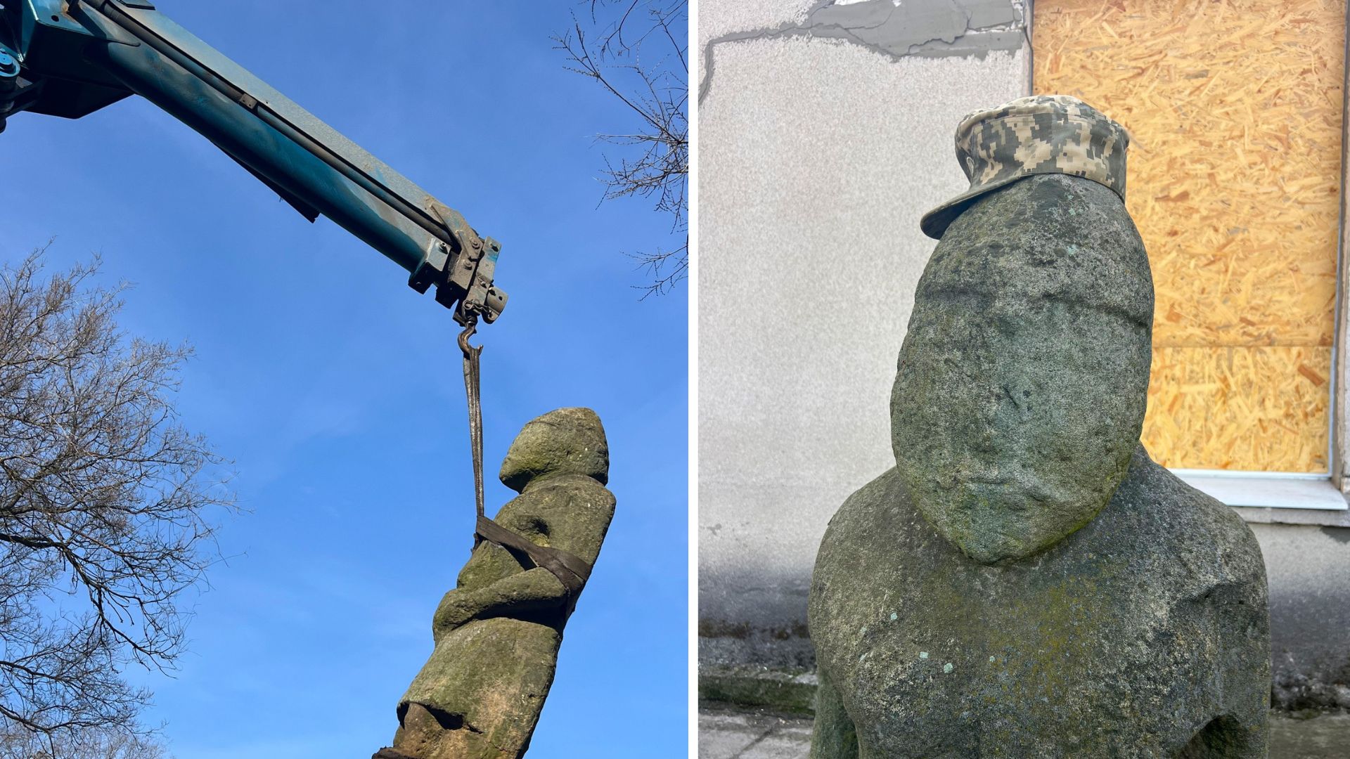 Військовим довелося відкопувати кам’яні скульптури вручну. За словами Каюка, одну з баб важко було підняти через великі розміри.