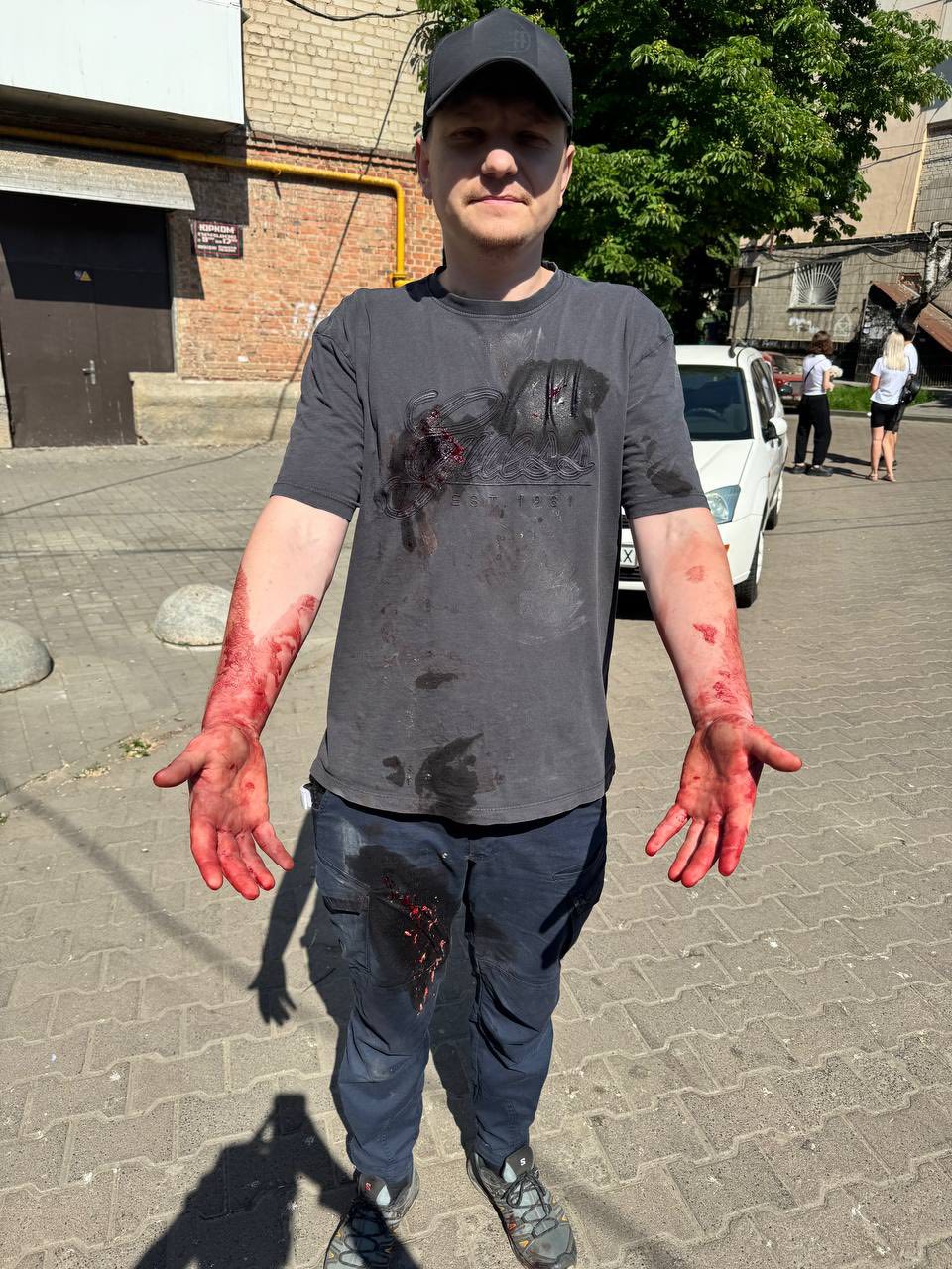 Воєнний кореспондент Кордон.Медіа Павло Зарва надав допомогу постраждалим унаслідок російської атаки по Сумах 3 червня.